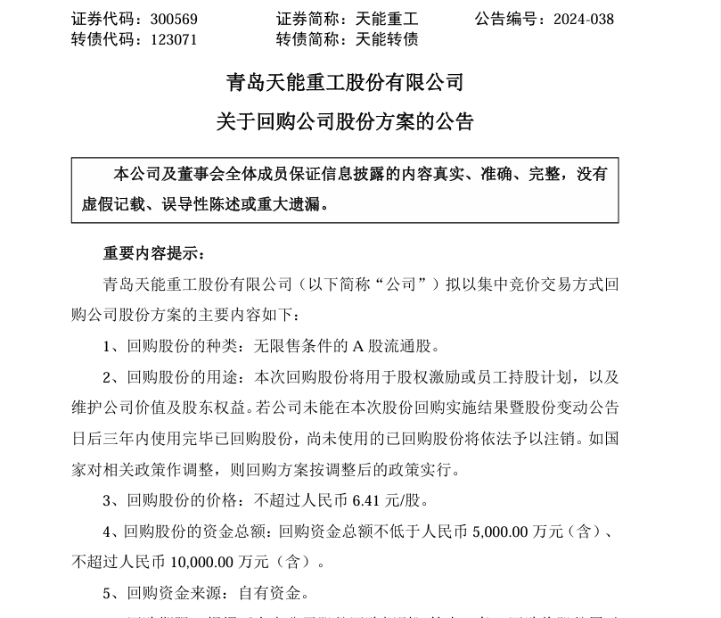 天能重工开展公司股份回购计划